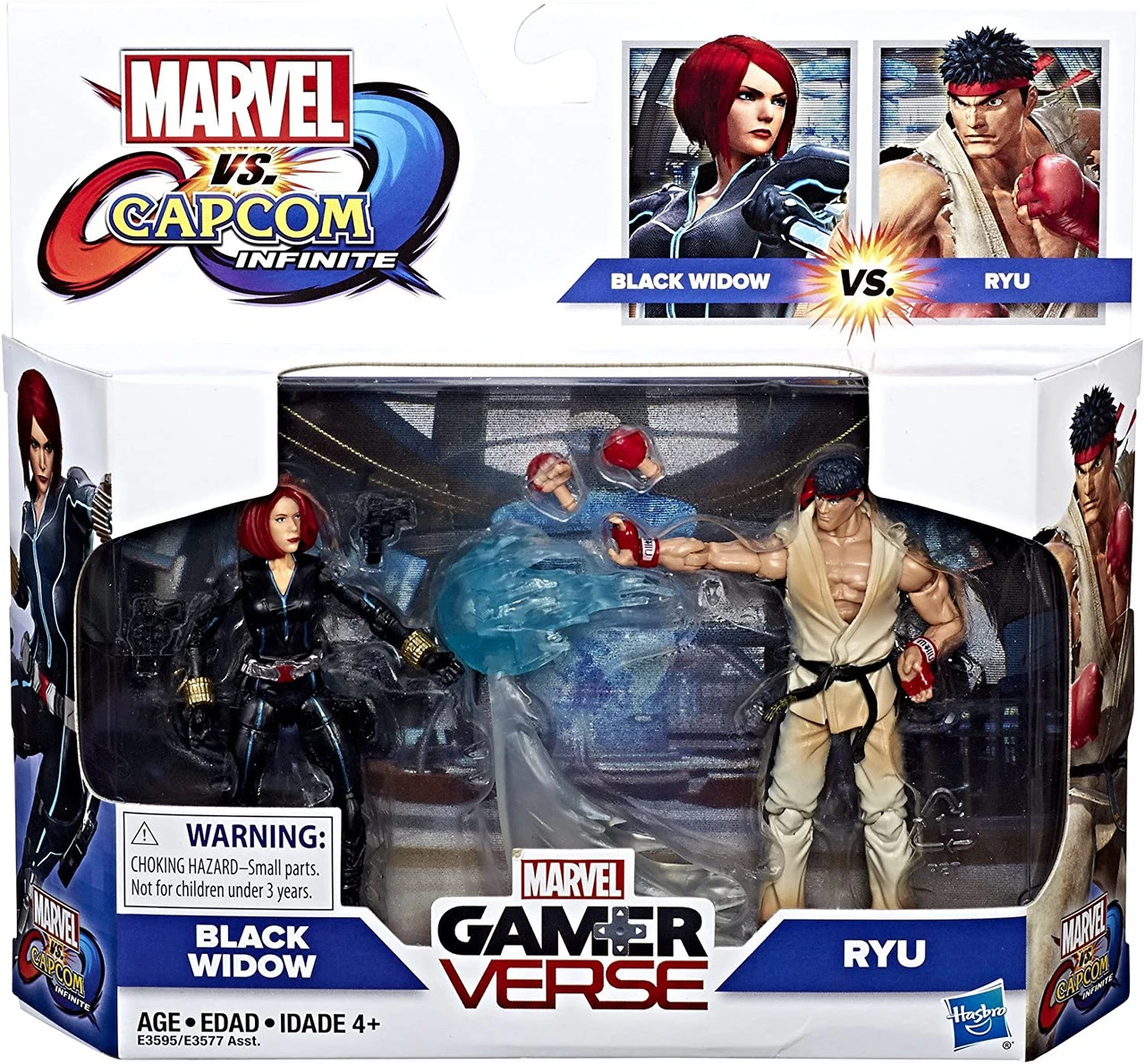 Heroes and villains of the Marvel and Capcom universes collide in the Marvel vs. Capcom: Infinite. Trained extensively in the art of combat and espionage and outfitted with state-of-the-art tech, Natasha Romanova is the super spy known as Black Widow. Ryu won the Street Fighter martial arts tournament to test his skill, starting a never ending quest for self-improvement. Imagine the clash of two universes with this Marvel Gamer verse 3. 75 inch 2-pack of figures inspired by Marvel vs. Capcom: Infinite video game, including Black Widow and Ryu figures.