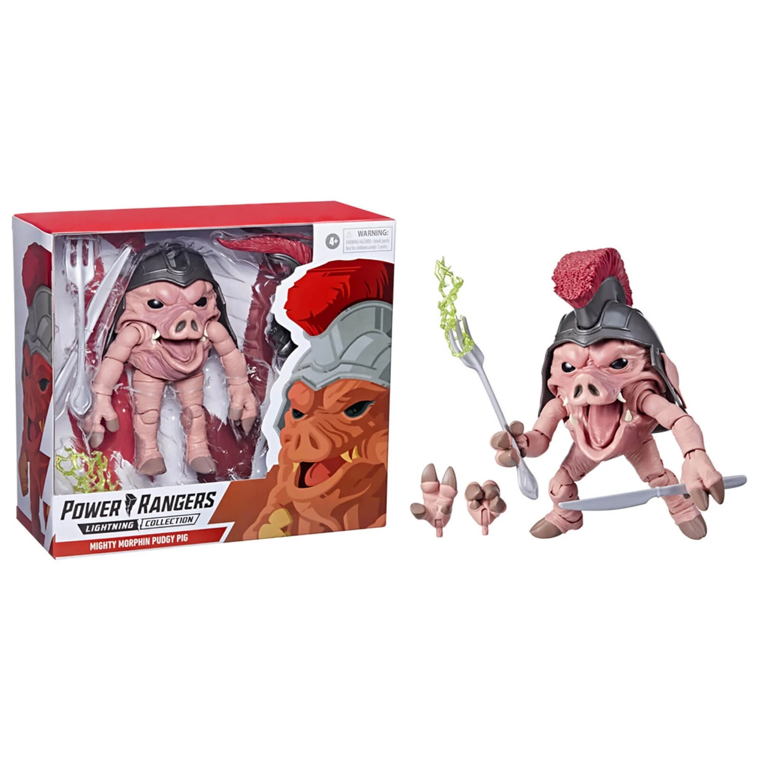 These 6-inch Lightning Collection Pudgy Pig figure features premium paint and decorative details inspired by the show, over 20 points of articulation for high poseability, oversized fork and knife weapon accessories and blast effect piece for more ways to play or display. Go Go Power Rangers!