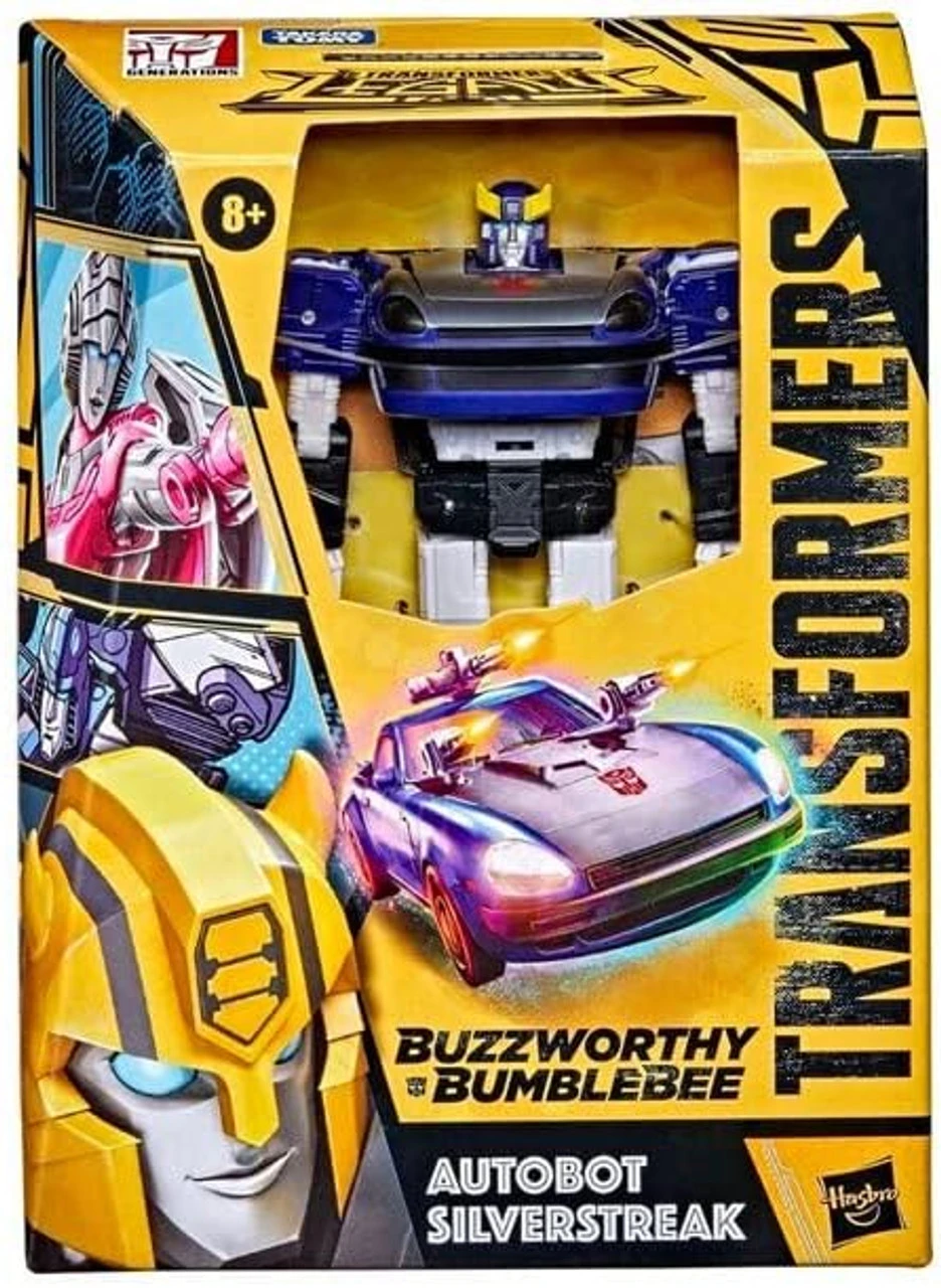 You’ve probably heard the buzz, but Bumblebee is kind of a big deal. And now the bodacious bot is making his mark with a line of some of the most buzzworthy Bumblebee products for fans of all ages. See what all the buzz is about. This Deluxe Class Autobot Silverstreak figure is inspired by the animated series, The Transformers, updated with a Generations-style design. The Autobot Silverstreak figure converts from robot to sports car mode in 15 steps and comes with 3 blaster accessories that attach in both modes. Buzzworthy Bumblebee figures feature special Buzzworthy Bumblebee collectible packaging. Collect more Buzzworthy Bumblebee figures, all sold separately.. Transformers and all related characters are trademarks of Hasbro. Includes: Figure, 3 accessories, and instructions. Figure scale: 5.5 inches Ages 8 and up Warning: Choking Hazard – Small parts. Not for children under 3 years.