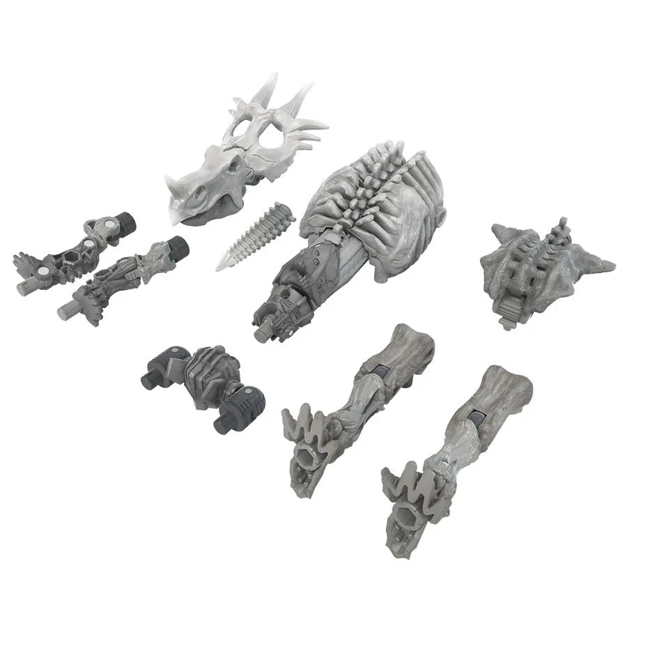 With the ancient and highly advanced F.O.S.S.I.L. (Fossilized Osteo-Skeletal Shield Integration Loadout) technology, Fossilizer bots, infused with primordial energy, break apart to weaponize their allies. The bone pieces of this Paleotrex figure break apart and attach to other figures. Use this Deluxe Predacon Fossilizer figure to beastify other figures with epic bone weapons and armor! (Sold separately, subject to availability.) Ractonite toy converts into a Styracosaurus fossil mode in 16 steps. Features lower jaw articulation optimal for roaring poses.