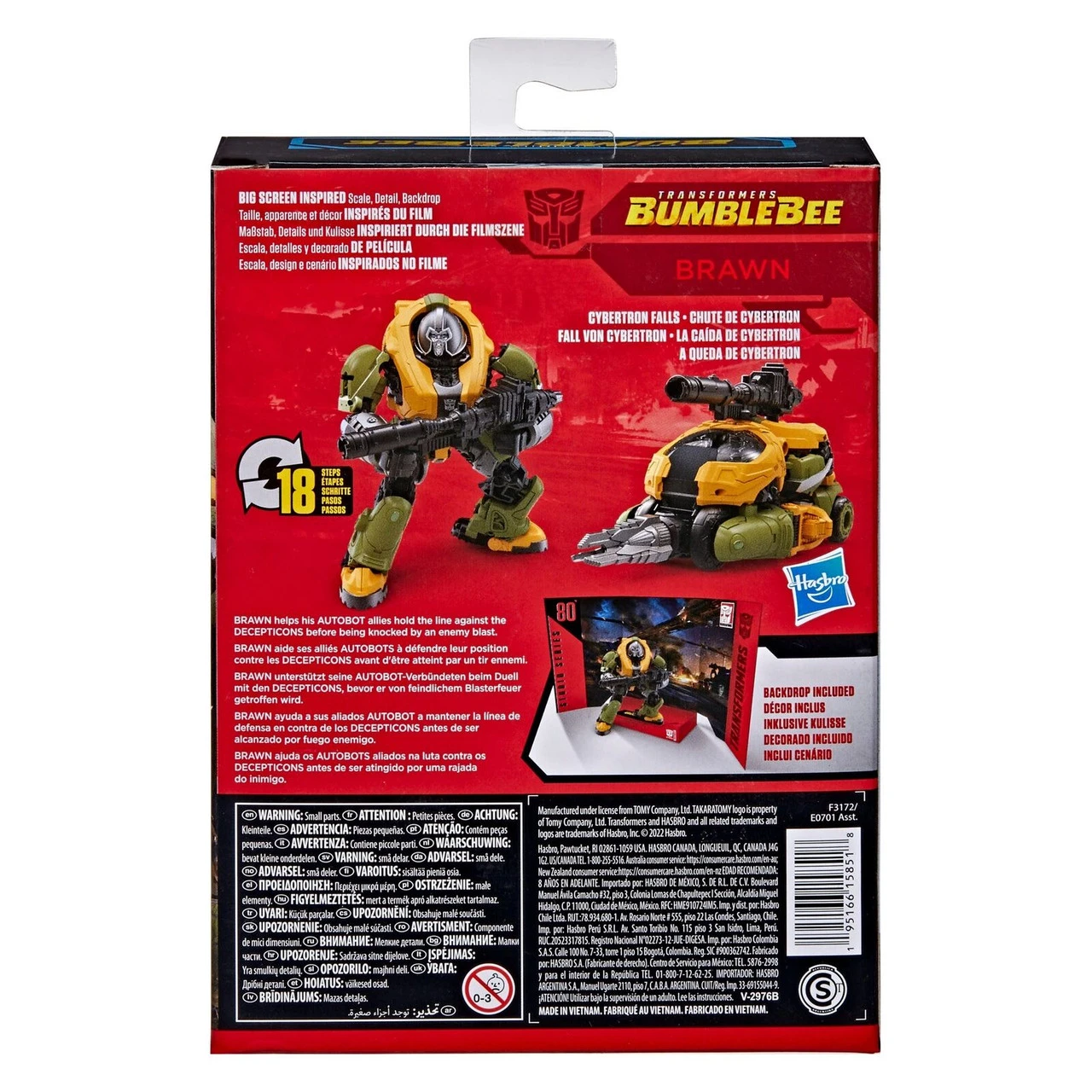 - BIG SCREEN INSPIRED: Figure scale reflects the character’s size in the world of Transformers: Bumblebee. Figure and packaging are inspired by the iconic Cybertron Falls scene
